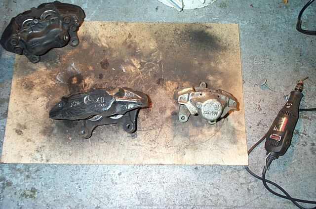 190E caliper and the 400E rear caliper, notice the 400E unit is larger and