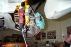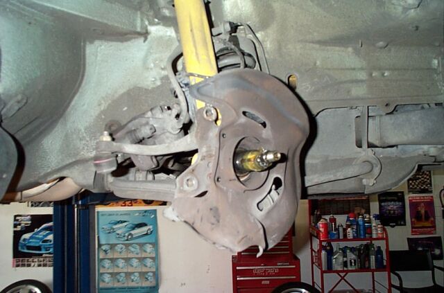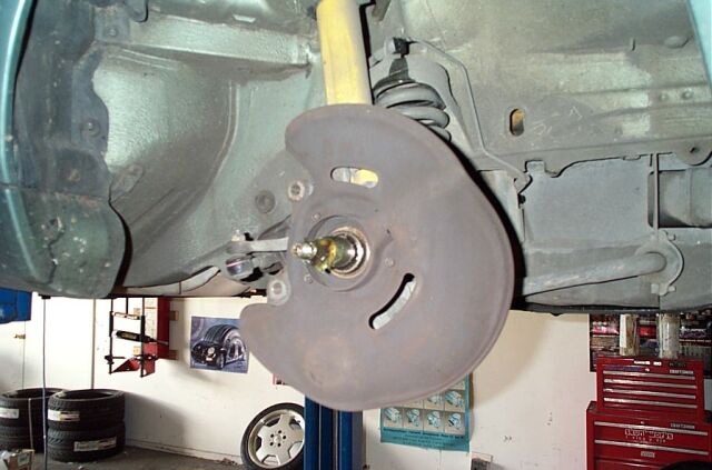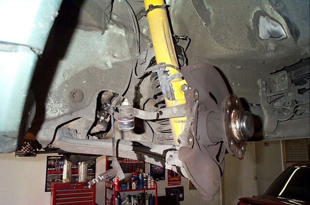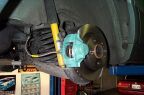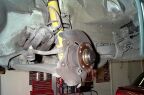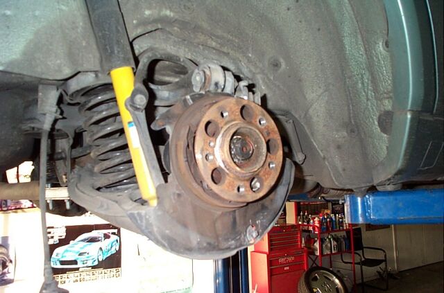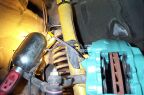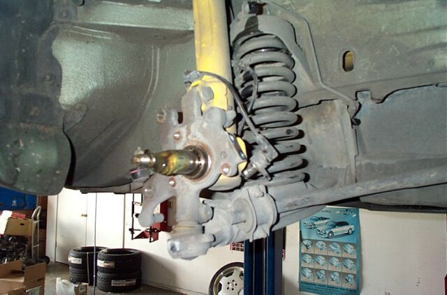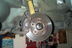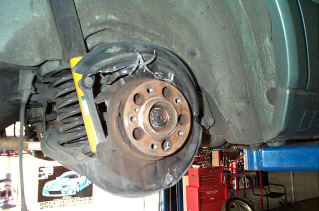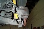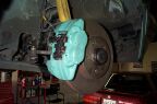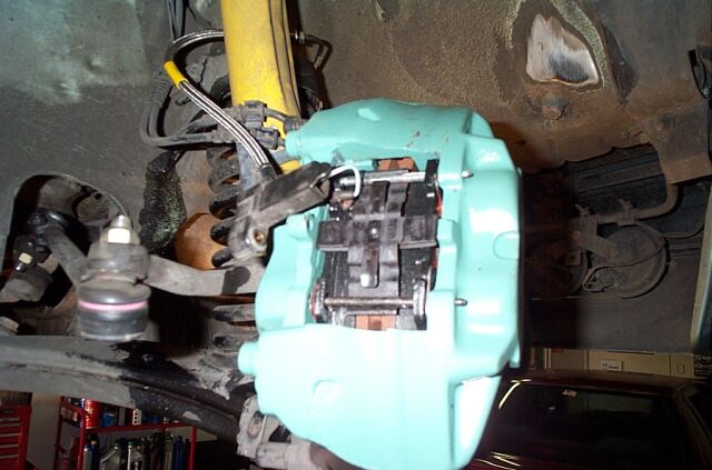 here shows the new front caliper loaded and the brake sensor hooked up.