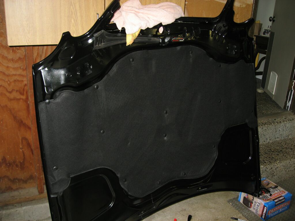 hood liner was next. It is held in place with pop in plastic rivets.